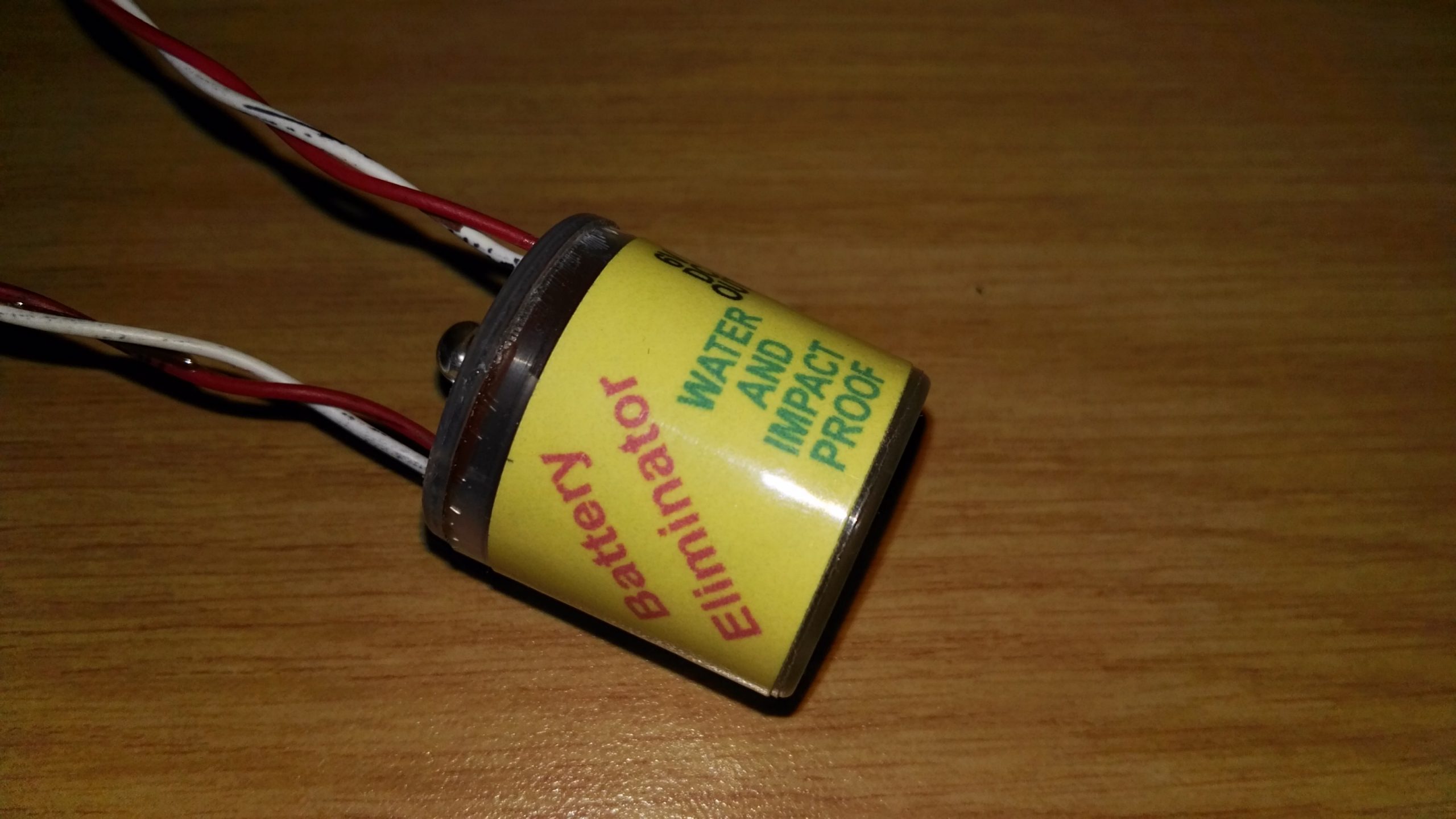 So, he went home and created a battery eliminator. No more AA batteries for his bait boat. This little device clips onto the 12 volt battery and provides the 6 volts required for the other items.